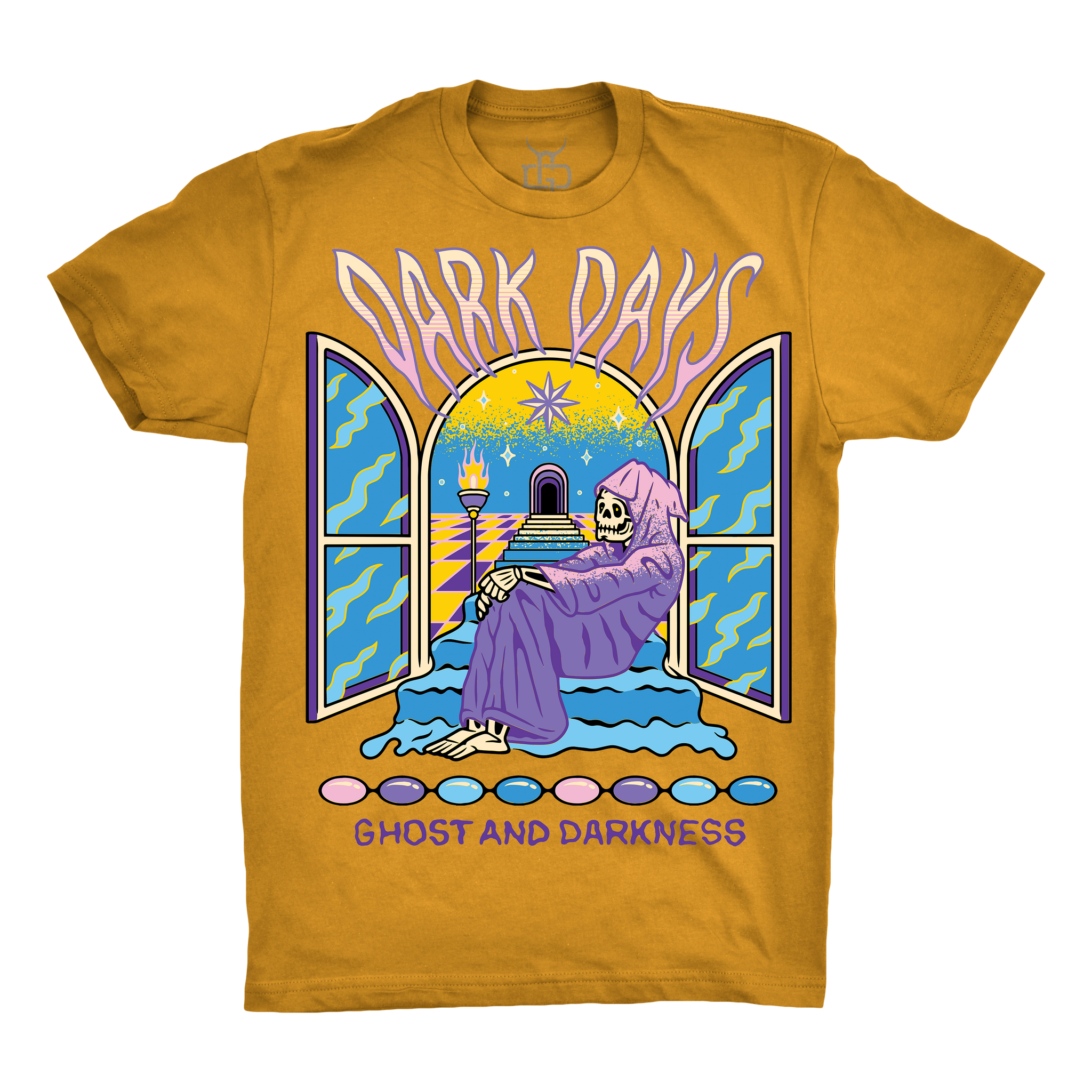 Trippy reaper artwork and bold tattoo attitude define the Dark Days Tee - dark, clean, and built for true ink culture.