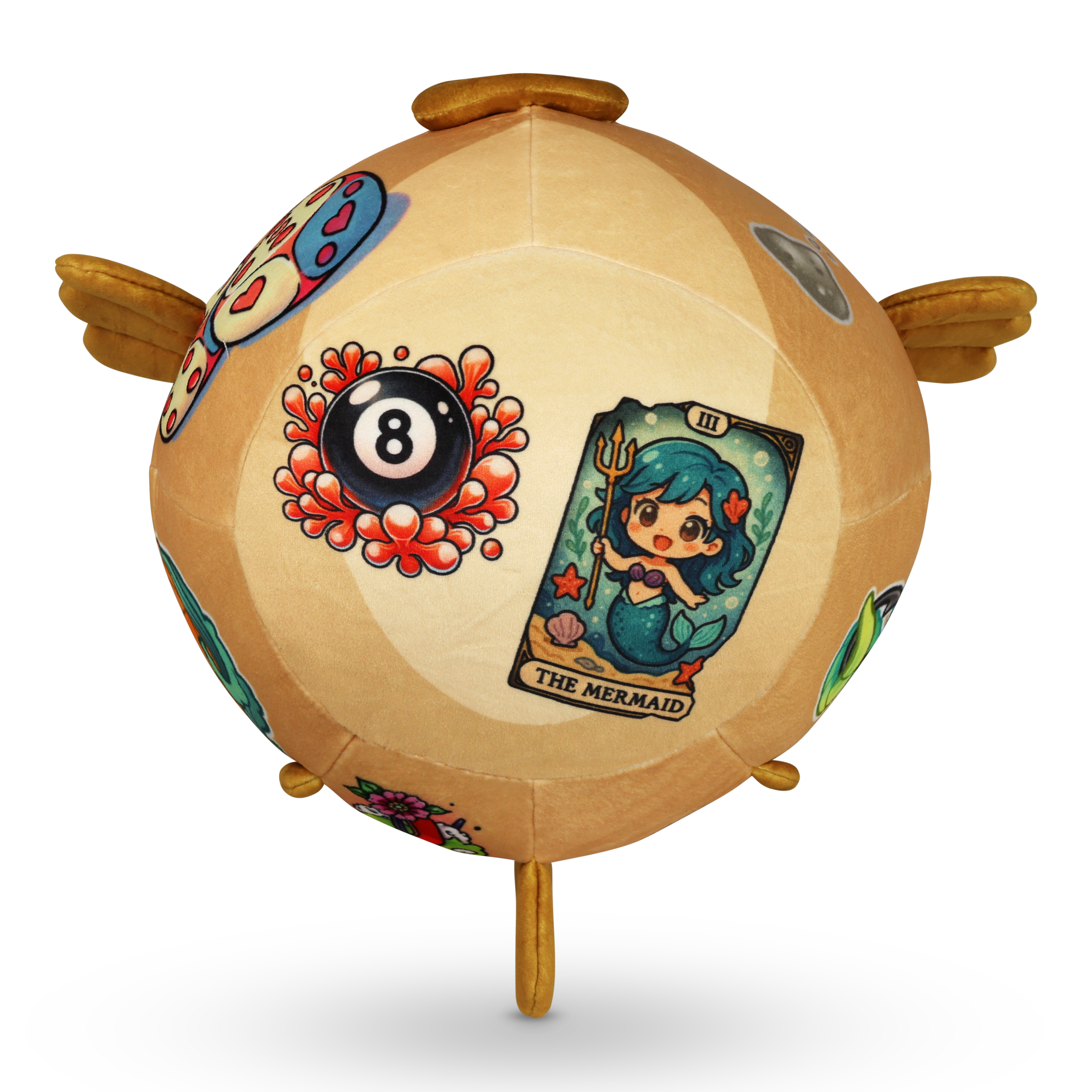 Mel the Pufferfish Plushie is a 13-inch Tater-style companion bursting with personality. Covered in vibrant tattoos and soft spikes, Mel is ultra squeezable and perfect for playful hugs. Its lively design and super soft feel make it an irresistible friend for fun and comfort.